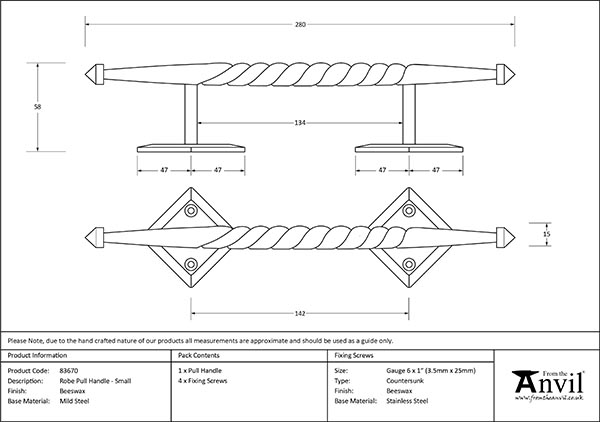 Beeswax is our most authentic finish for steel. After forging, these products are dipped into hot beeswax which allows them to retain their original colours ranging from blue to deep ochre. All our Beeswax ironmongery offers a subtle matt richness and is a more natural, and far softer, alternative to a black powder coated finish. These products offer excellent internal protection when properly maintained.