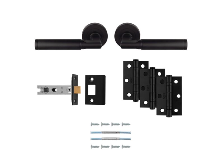 Upgrade your interior doors with the Ultimate Door Pack (UDP006MB/INTB) Belas Latch Pack. This essential door hardware kit combines a smooth tubular latch with premium lever handles and hinges for a consistent, modern look throughout your home.