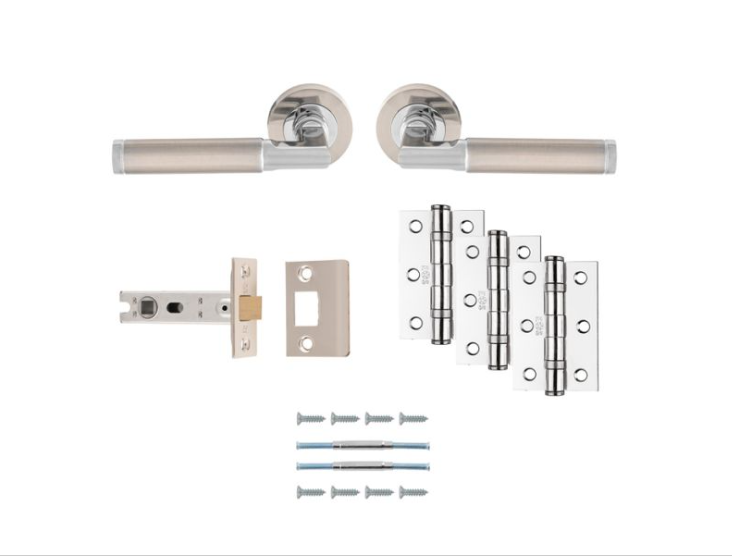 Upgrade your interior doors with the Ultimate Door Pack (UDP006SNCP/INTB) Belas Latch Pack. This essential door hardware kit combines a smooth tubular latch with premium lever handles and hinges for a consistent, modern look throughout your home.