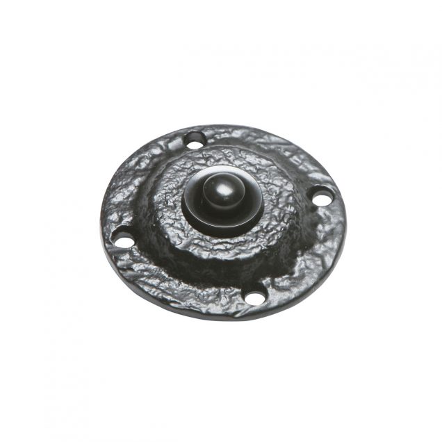 Antique black iron bell push 751. This round bell push is supplied with electrical contacts.