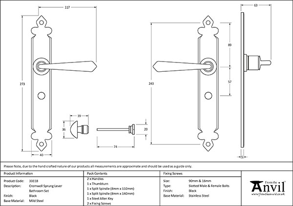Our expert Blacksmiths hand forge each Cromwell handle from mild steel to make each product unique.