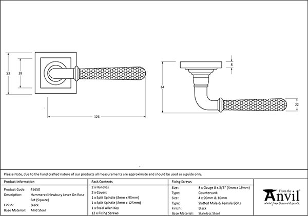 Black Hammered Newbury Lever on Rose Set (Square) | 45650