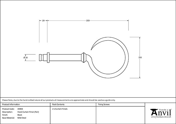 Our extensive collection of curtain furniture allows you to fully furnish your home with matching From The Anvil products, down to the finest details. These finials add a decorative finishing touch to our range of curtain poles. Our finials can also replace the standard end caps provided with our large pull handles, allowing coordination throughout your home. Supplied as a pair. Our classic Black finish is the perfect choice for those looking to make a bold statement. This finish is best suited to traditional properties and interiors, and looks fantastic when paired with neutral colourways and natural materials such as timber, stone and tile. Our Black products have a distinctive, subtle sheen; hand forged from mild steel this finish are extremely low maintenance, offering excellent corrosion resistance and durability as a result of being powder coated, then baked in a high temperature oven during the final stages of manufacturing. An extremely low maintenance finish, ideal for use in kitchens and bathrooms, or externally where damp conditions are expected. Click to learn more about this Finish.