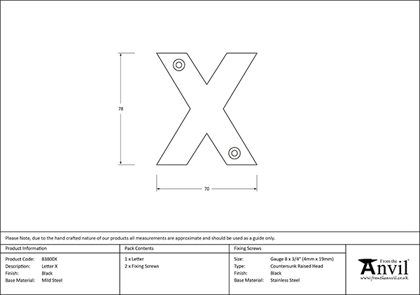 Our weighty, decorative letters will add the finishing touch to any entrance door. Sold in singles. Supplied with matching SS wood screws. Our classic Black finish is the perfect choice for those looking to make a bold statement. This finish is best suited to traditional properties and interiors, and looks fantastic when paired with neutral colourways and natural materials such as timber, stone and tile. Our Black products have a distinctive, subtle sheen; hand forged from mild steel this finish are extremely low maintenance, offering excellent corrosion resistance and durability as a result of being powder coated, then baked in a high temperature oven during the final stages of manufacturing. An extremely low maintenance finish, ideal for use in kitchens and bathrooms, or externally where damp conditions are expected. Click to learn more about this Finish.