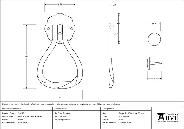 Our Pear door knocker shows a true masterpiece of forging. Drawn from a single piece of mild steel and hand-bent to form the twisted pear shape, highlighting every hammer blow made by our skilled Blacksmiths.