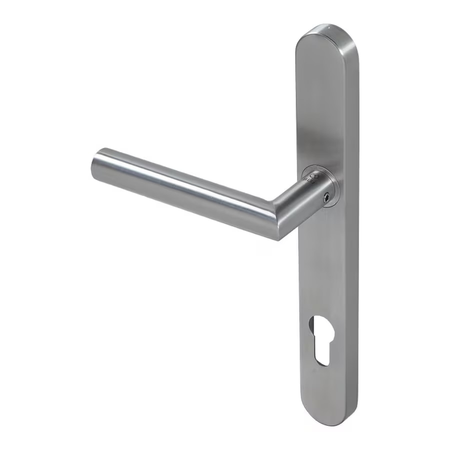 BLU KM078C Mitre Lever Door Handle on Backplate (Dual Sprung) 52mm Handle Projection Version – 316 Satin Stainless Steel