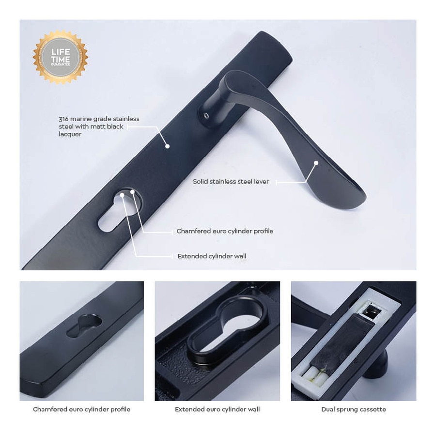 BLU Regent 095 Right Hand Multipoint Door Lock Handle Dual Sprung 316 Grade Stainless Steel Matt Black Lacquer Finish