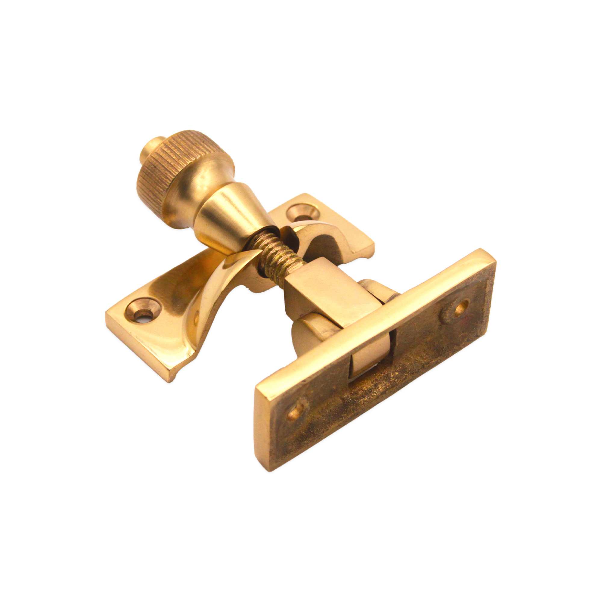 The traditional ‘Brighton Window Fastener’ is a classic method for locking sliding sash windows. The brass construction gives a solid look to it with an excellent durability as it can use by pulling the sprung toggle arm down and screw the knob into the keep.