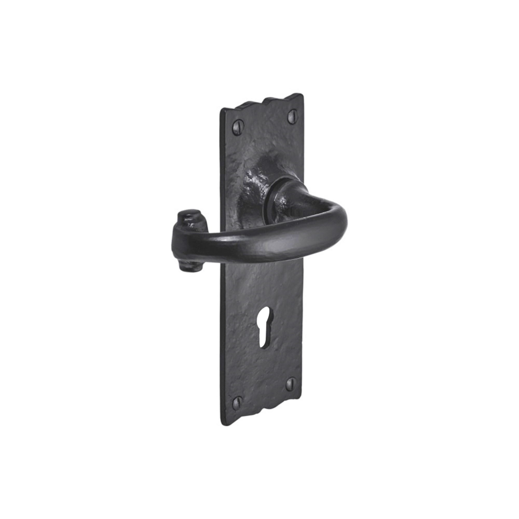 Our traditional ‘Burford Lever Lock Door Handles’ of high quality cast iron construction. Protected with a high density zinc rich undercoat to increase durability, with a UV colour fast black powder coated finish with a stainless steel inner mechanism for increased endurance. It is designed with inward curved handle ending with a wrapped flange flourish for a comfortable grip that looks great on any door.