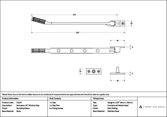 The contemporary Brompton suite features a textured, knurled surface. The industrial styling of the diamond pattern creates a modern range of products that can be used consistently throughout a property. Our Brompton window furniture is hand forged from solid brass to create a product that’s as beautiful as it is hardwearing. A perfect design choice to use throughout your property with many matching products available. Designed to match the products in our Brompton range. Available in three sizes. Supplied with matching SS wood screws. Burnished Brass is an excellent choice for those wanting to add subtle luxury to their home interiors. Offering warmth without over dominating, this timeless finish complements a range of colours, and looks especially stunning when paired with paler shades. Hand forged from a base of solid brass, Burnished Brass is an excellent example of how our unique manufacturing techniques add further intrigue to the natural charm of the base material. Each product undergoes an accelerated ageing process, creating a dark patina before being placed into barrelling machines, giving them the beautiful burnished finish. During the final stages of manufacturing, a high quality, clear matt lacquer is applied for protection. Click to learn more about this Finish.