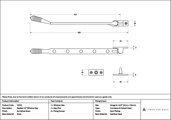 This Reeded stay features a classic regency design with a stylish reeded end and is suited to traditional and contemporary settings alike. Our weighty Reeded stay is forged from solid brass. The reeded part of the handle accentuates the hand finishing carried out by our expert craftsmen. A perfect design choice for any home, with many matching products available. Designed to match our range of Reeded window furniture. Available in three sizes. Supplied with matching SS wood screws. Burnished Brass is an excellent choice for those wanting to add subtle luxury to their home interiors. Offering warmth without over dominating, this timeless finish complements a range of colours, and looks especially stunning when paired with paler shades. Hand forged from a base of solid brass, Burnished Brass is an excellent example of how our unique manufacturing techniques add further intrigue to the natural charm of the base material. Each product undergoes an accelerated ageing process, creating a dark patina before being placed into barrelling machines, giving them the beautiful burnished finish. During the final stages of manufacturing, a high quality, clear matt lacquer is applied for protection. Click to learn more about this Finish.