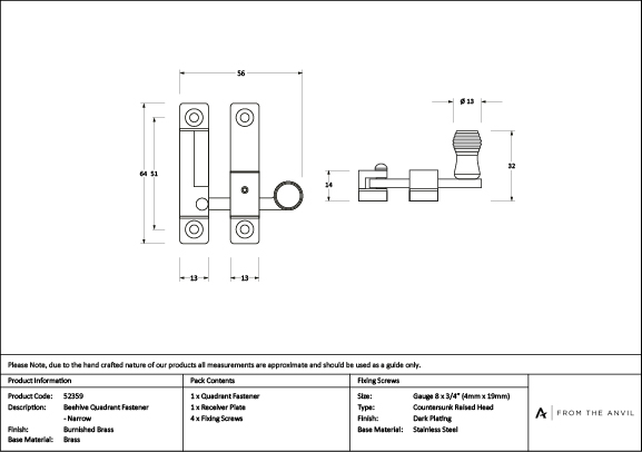 Our collection of sash furniture complements all other products within the range, allowing a consistent finish throughout a property or project. Designed to match the Beehive door and cabinet furniture in the range. A stylish quadrant fastener used to secure your sash window. Ideal for use on a narrow top rail due to a thin fixing keep. The fastener has a locking mechanism by way of a grub screw. Sold in singles. Supplied with matching SS wood screws. Burnished Brass is an excellent choice for those wanting to add subtle luxury to their home interiors. Offering warmth without over dominating, this timeless finish complements a range of colours, and looks especially stunning when paired with paler shades. Hand forged from a base of solid brass, Burnished Brass is an excellent example of how our unique manufacturing techniques add further intrigue to the natural charm of the base material. Each product undergoes an accelerated ageing process, creating a dark patina before being placed into barrelling machines, giving them the beautiful burnished finish. During the final stages of manufacturing, a high quality, clear matt lacquer is applied for protection. Click to learn more about this Finish.