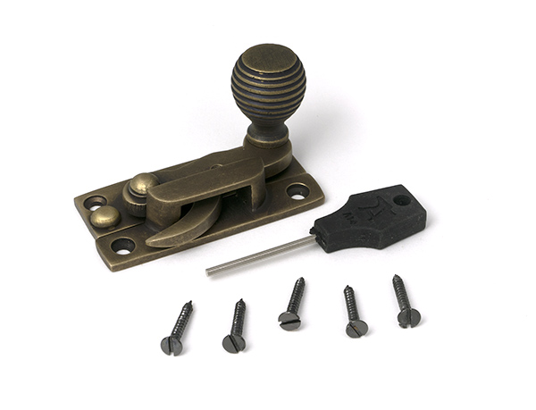 Our collection of sash furniture is available in various finishes designed to flawlessly match the rest of our products. This stylish Beehive hook fastener is used to secure a sash window. Designed to match the products in our Beehive range. Ideal for use on a narrow top rail due to a thin fixing keep. The locking mechanism operates by way of grub screw. Supplied with matching SS wood screws. Burnished Brass is an excellent choice for those wanting to add subtle luxury to their home interiors. Offering warmth without over dominating, this timeless finish complements a range of colours, and looks especially stunning when paired with paler shades. Hand forged from a base of solid brass, Burnished Brass is an excellent example of how our unique manufacturing techniques add further intrigue to the natural charm of the base material. Each product undergoes an accelerated ageing process, creating a dark patina before being placed into barrelling machines, giving them the beautiful burnished finish. During the final stages of manufacturing, a high quality, clear matt lacquer is applied for protection. Click to learn more about this Finish.