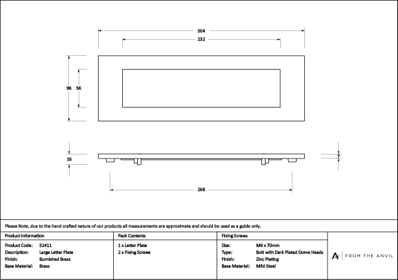 Burnished Brass Large Letter Plate | 52411