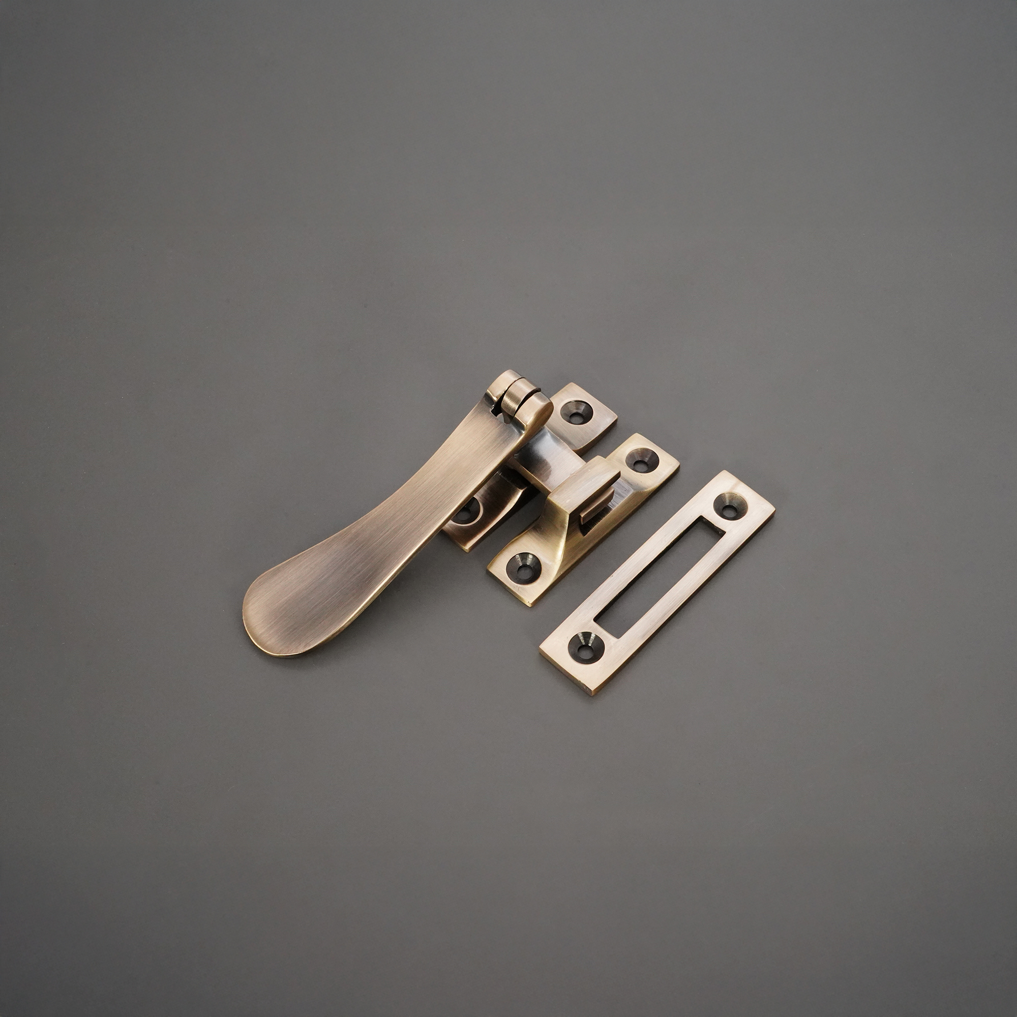 The sleek ‘Casement Fastener’ with a spoon shape pattern used for securing timber casement windows. The brass construction gives a solid look to it with an excellent durability with a unique, pivoting handle which makes it reversible for use on right or left swing windows.