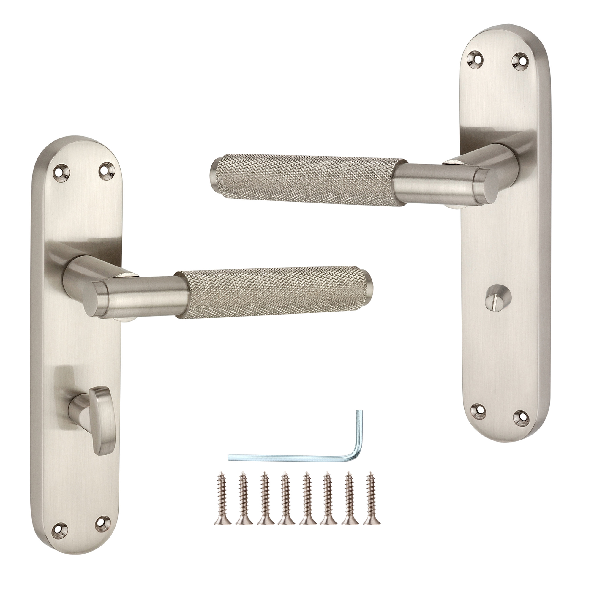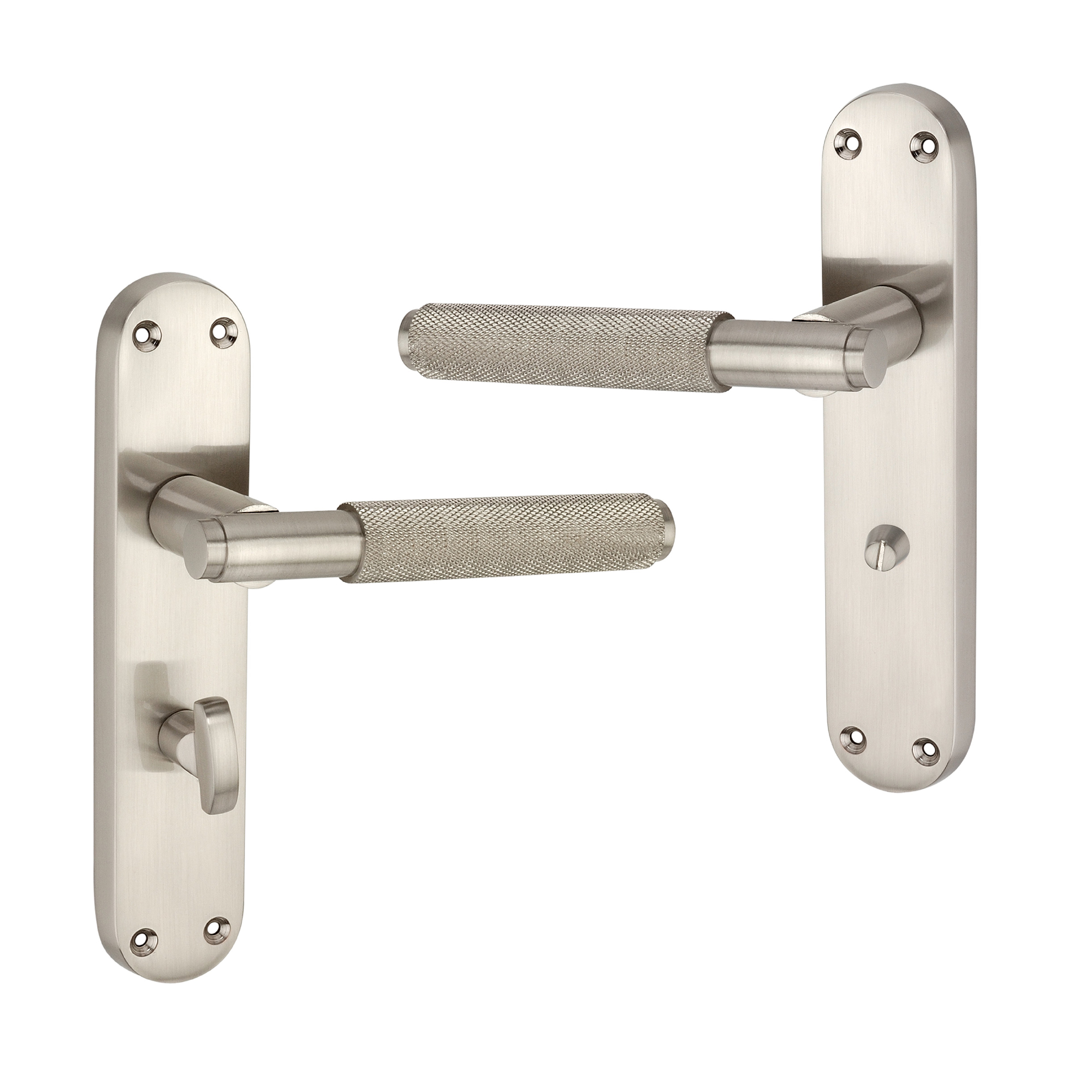 Connaught Knurled Lever on Backplate Privacy Satin Nickel