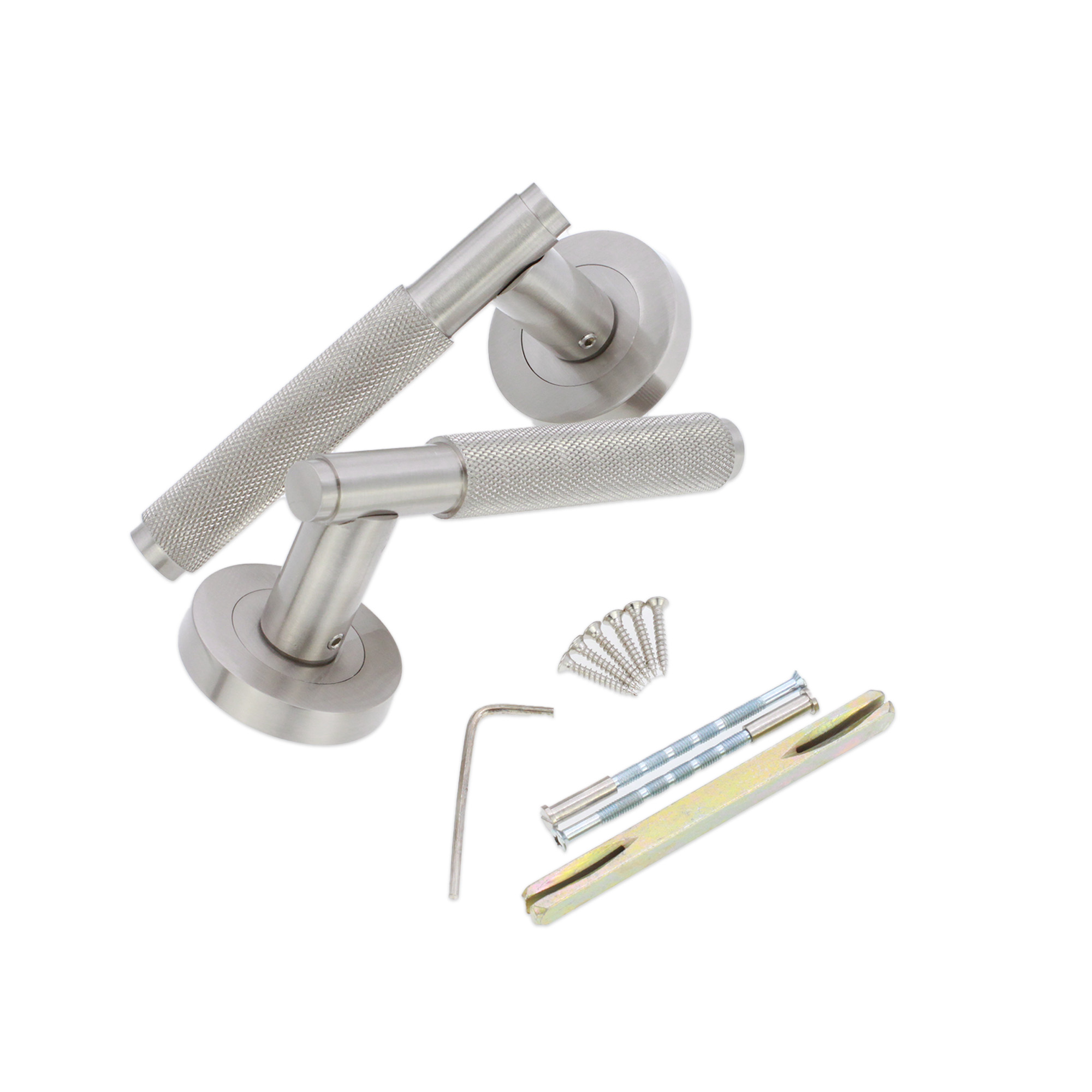 Our contemporary in style ‘Connaught’ internal door handles, pair on a sprung rose, feature a knurled design that feels comfortable and tactile with a straight lever handle design. This can be used on their own, for regular passage doors, or can be combined with locking or bathroom escutcheons if security/privacy is required.