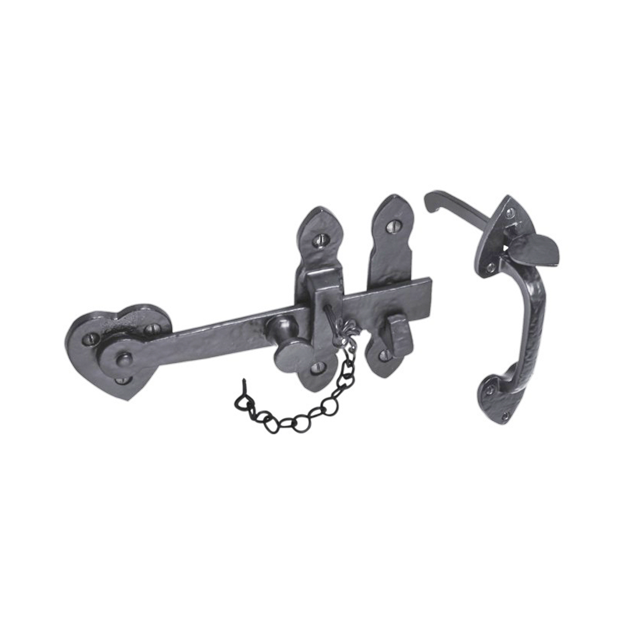Our antique black ‘Cottage Thumb Latch Set’ is made of high quality handmade wrought iron. Protected with a high density zinc rich undercoat to increase durability, with a UV colour fast black powder coated finish. The door or gate is fixed with thumb latch on one side and latch bar on the other side. It is a traditional basic operation gate latch. When the thumb latch is depressed the latch bar raises on the other side of the gate from its keep allowing the gate to open.