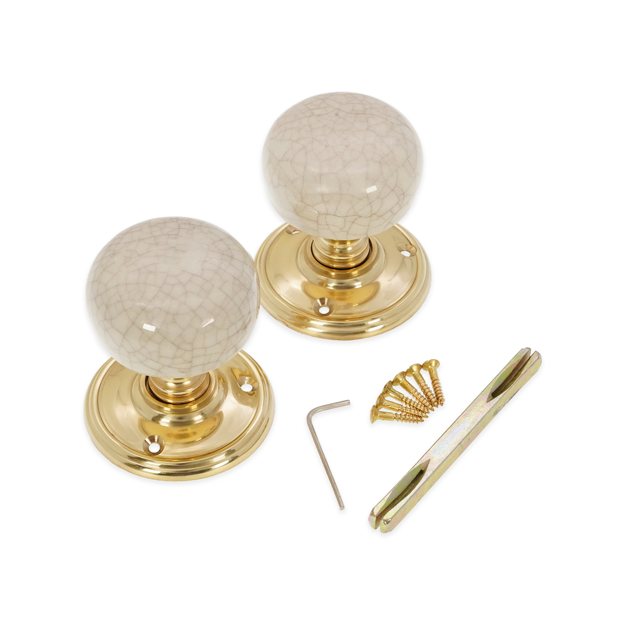 Polished Brass Crackled Porcelain Mortice Door Knob Door Hardware