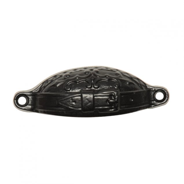 Kirkpatrick Cupboard Pull, width 115mm. made from Malleable Iron and finished in Antique Black or Pewter.