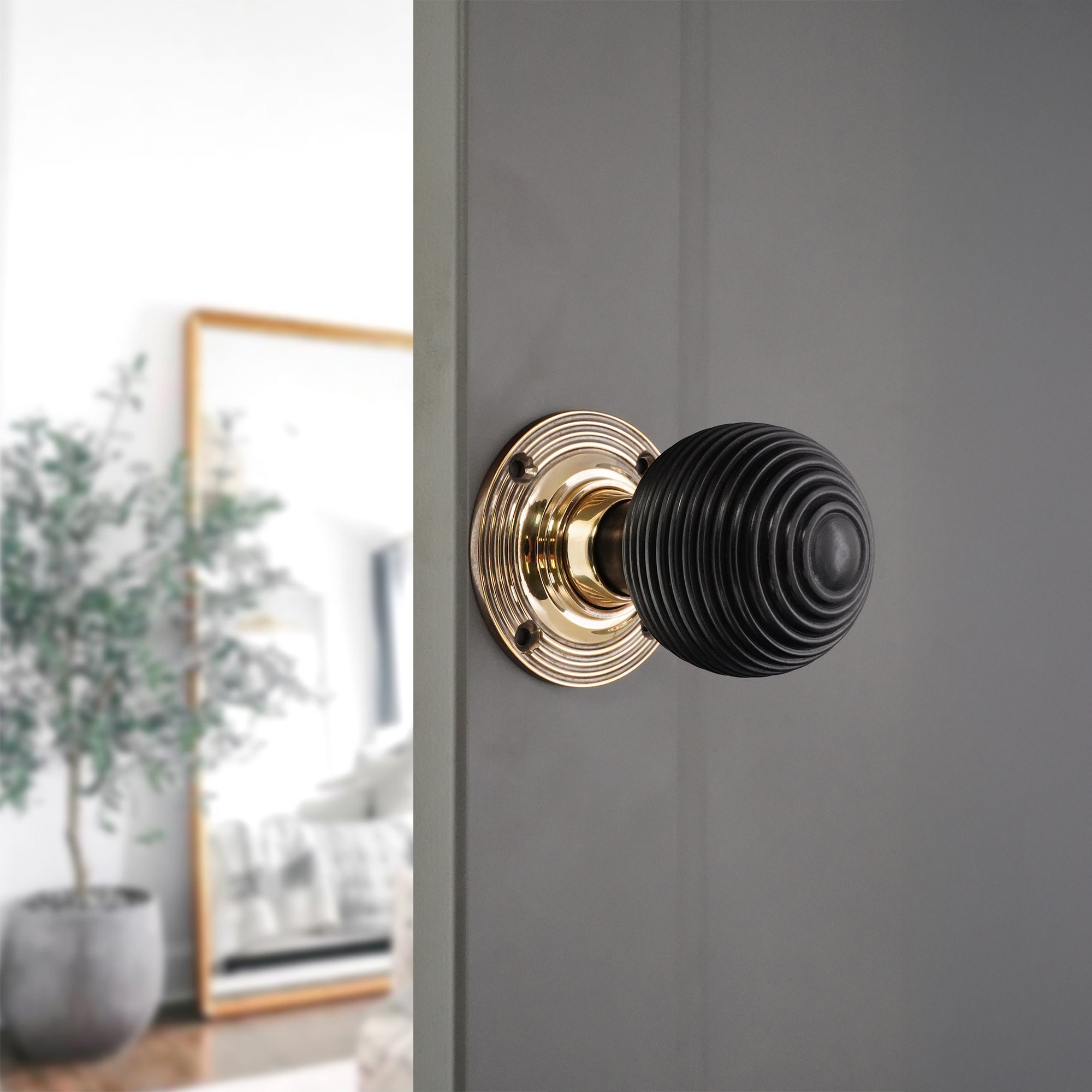 Our classic ‘Ebony Beehive’ ringed ball shaped unsprung PURE Ebony wood mortice door with etched ring round rose will add a touch of luxury to any door. A rich and polished finish, maintain with the use of maintenance wax based on Solid Brass rose, giving it durability and contemporary style. It retains great flexibility as it can be used as a mortice knob or alternatively with our exciting range of rim locks and supplied in pairs.