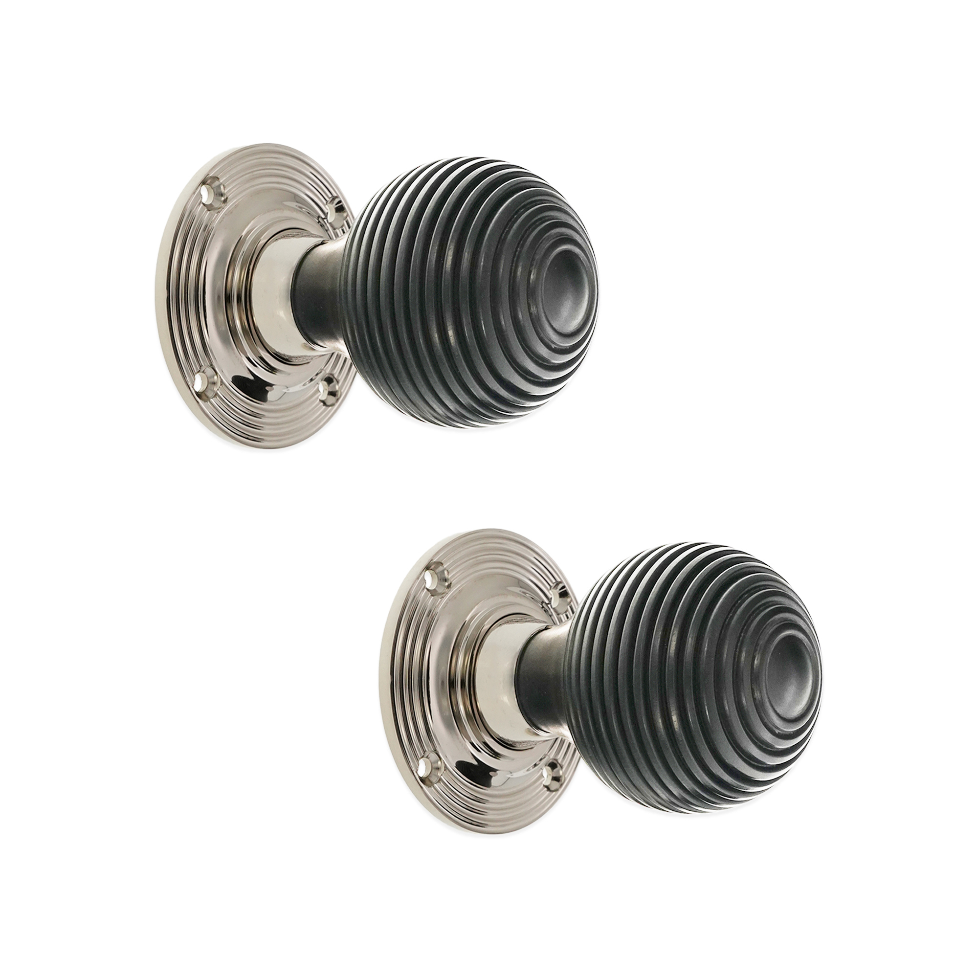 Polished Nickel Ebony Beehive Rim/Mortice Door Knob Door Hardware