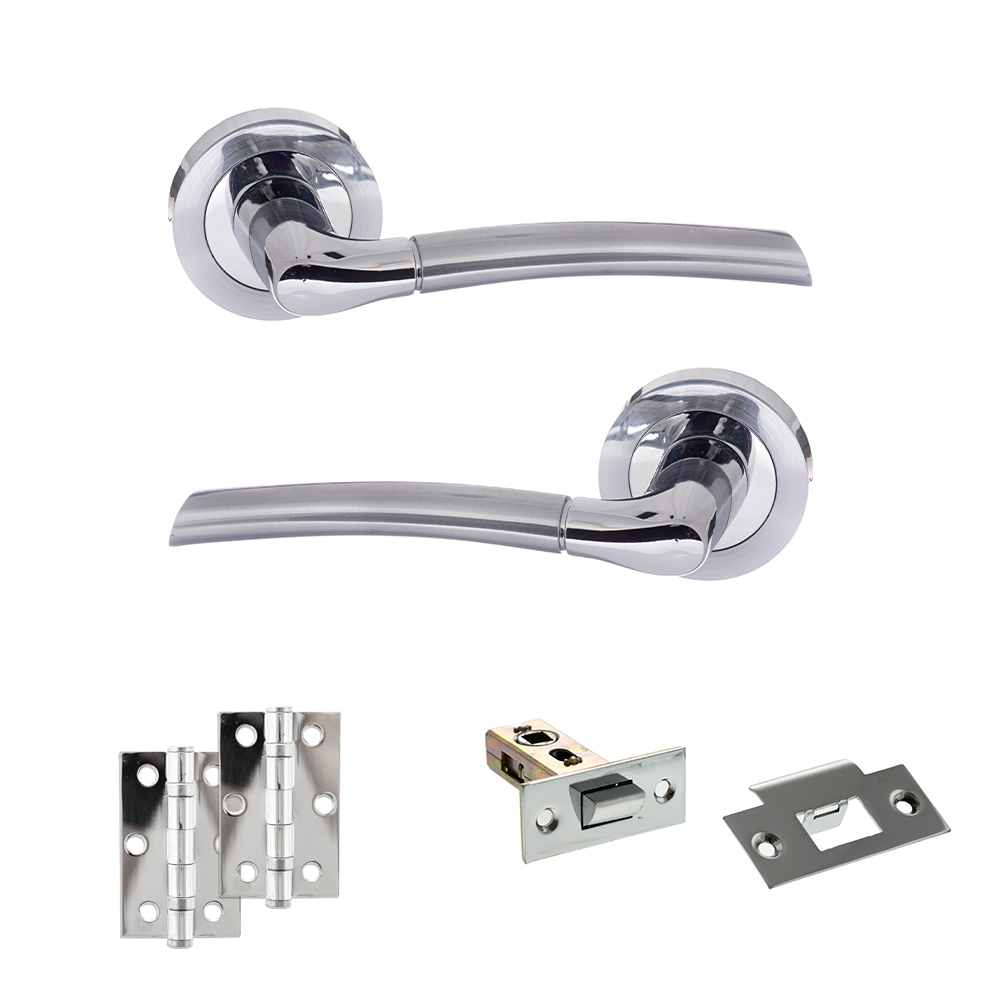 Eco Swell Door Handle Pack (Latch Set – 2.5″ Latch, 3″ Hinges x2) – Satin Chrome/Polished Chrome