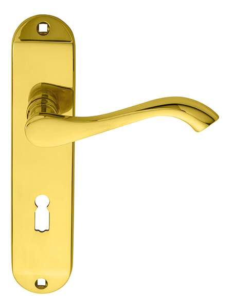 Lever on latch backplate. A unique and distinctive geometric lever on a formed angular backplate. The shape of the lever itself is slim at the middle and chunky towards the end of the handle, allowing the user to grip it firmly when used. The angular cut backplate compliments the faceted diamond cut geometry of the handle. This is an ideal choice for use in many settings, such as at home or at shops and offices. Comes with a 10 year mechanical guarantee and is Fire door rated.