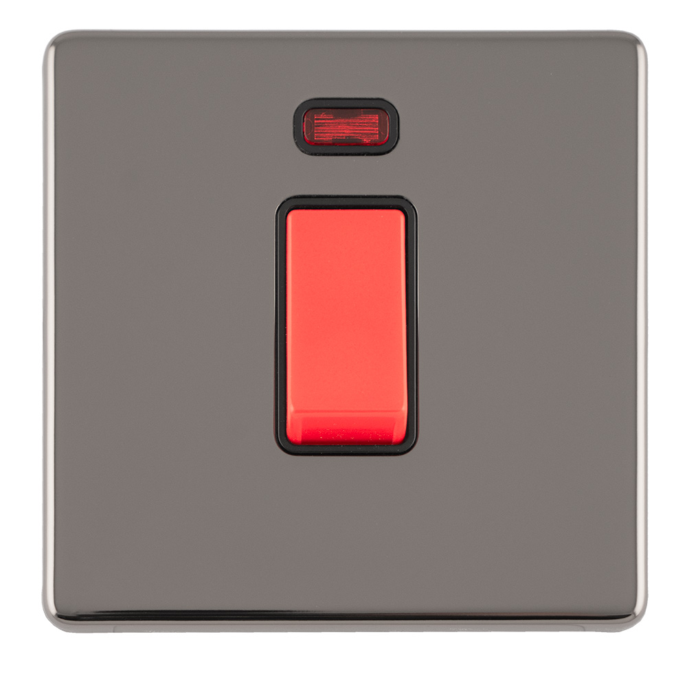 1 Gang 45Amp Dp Switch With Neon Flat Concealed Matt Black Plate Red Rocker