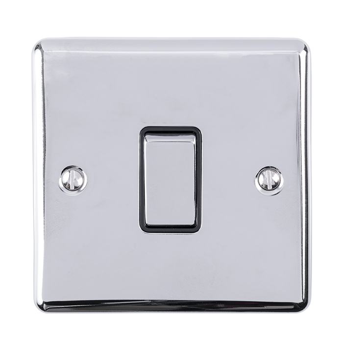 1 Gang 10Amp 2Way Switch Polished Chrome Enhance Range Black Trim