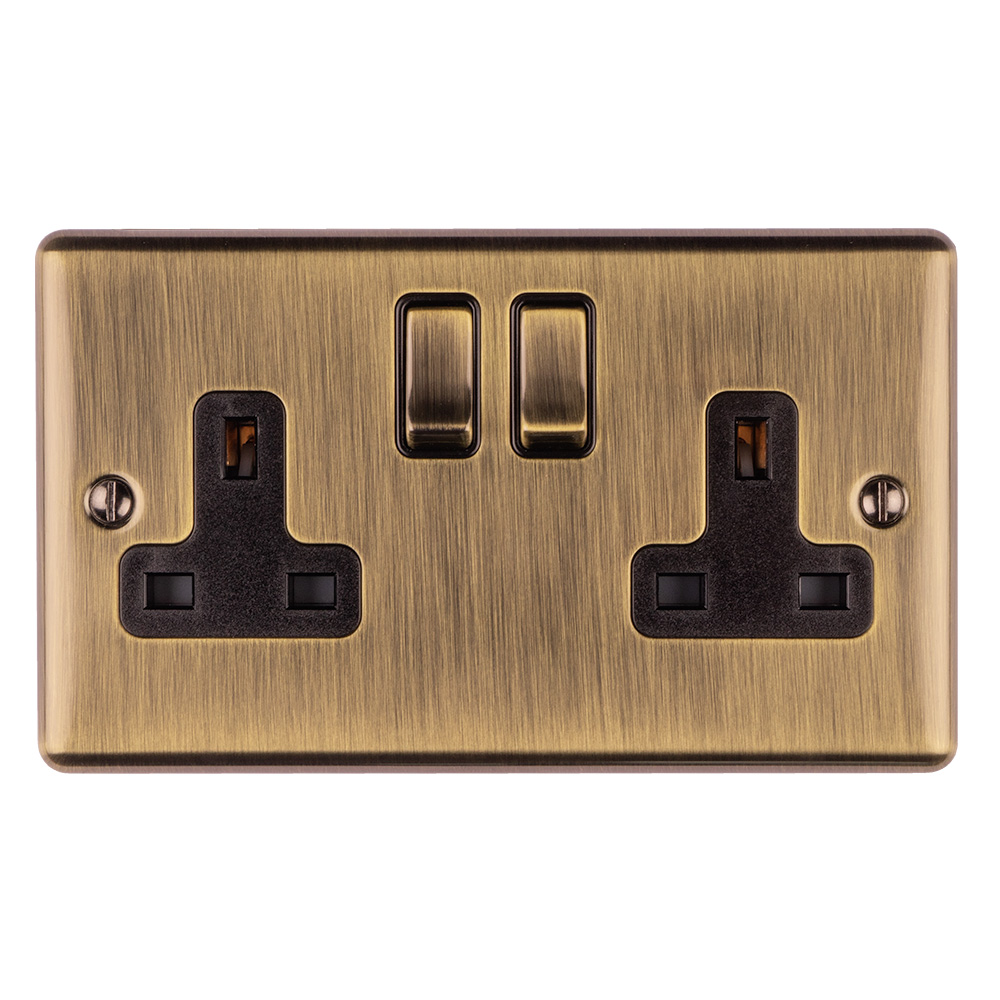 2 GANG 13AMP DP SWITCHED SOCKET ANTIQUEENHANCE RANGE BLACK TRIM