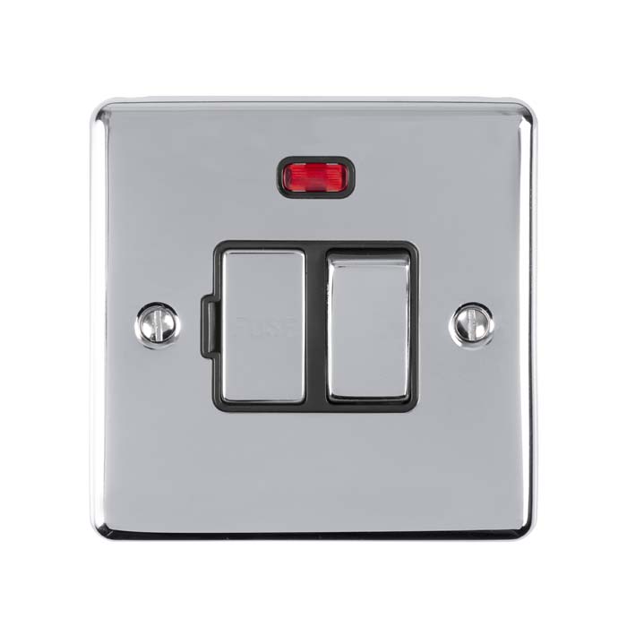 13Amp DP Switched Fuse Spur With Neon Polished Chrome Enhance Range Black Trim