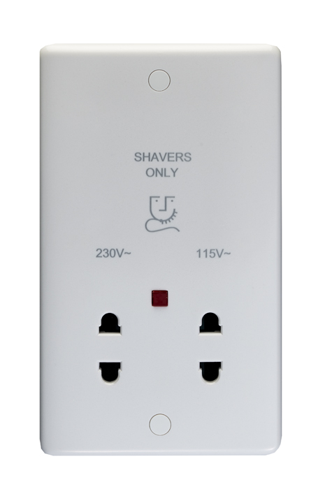 Enhance White Plastic Dual Voltage Shaver Socket With Neon. Voltage 230/115V and conforms to BSEN 61558.