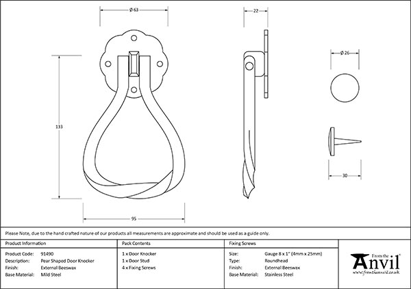 Our Pear door knocker shows a true masterpiece of forging. Drawn from a single piece of mild steel and hand-bent to form the twisted pear shape, highlighting every hammer blow made by our skilled Blacksmiths.