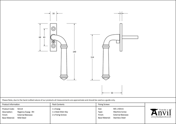 Our External Beeswax finish is a signature of From The Anvil and is manufactured using our unique anti-corrosive beeswax. Much like our standard Beeswax, it offers a matt richness with a depth of colour, ranging from blue to deep ochre red. This natural finish is a far softer alternative to black powder coating.