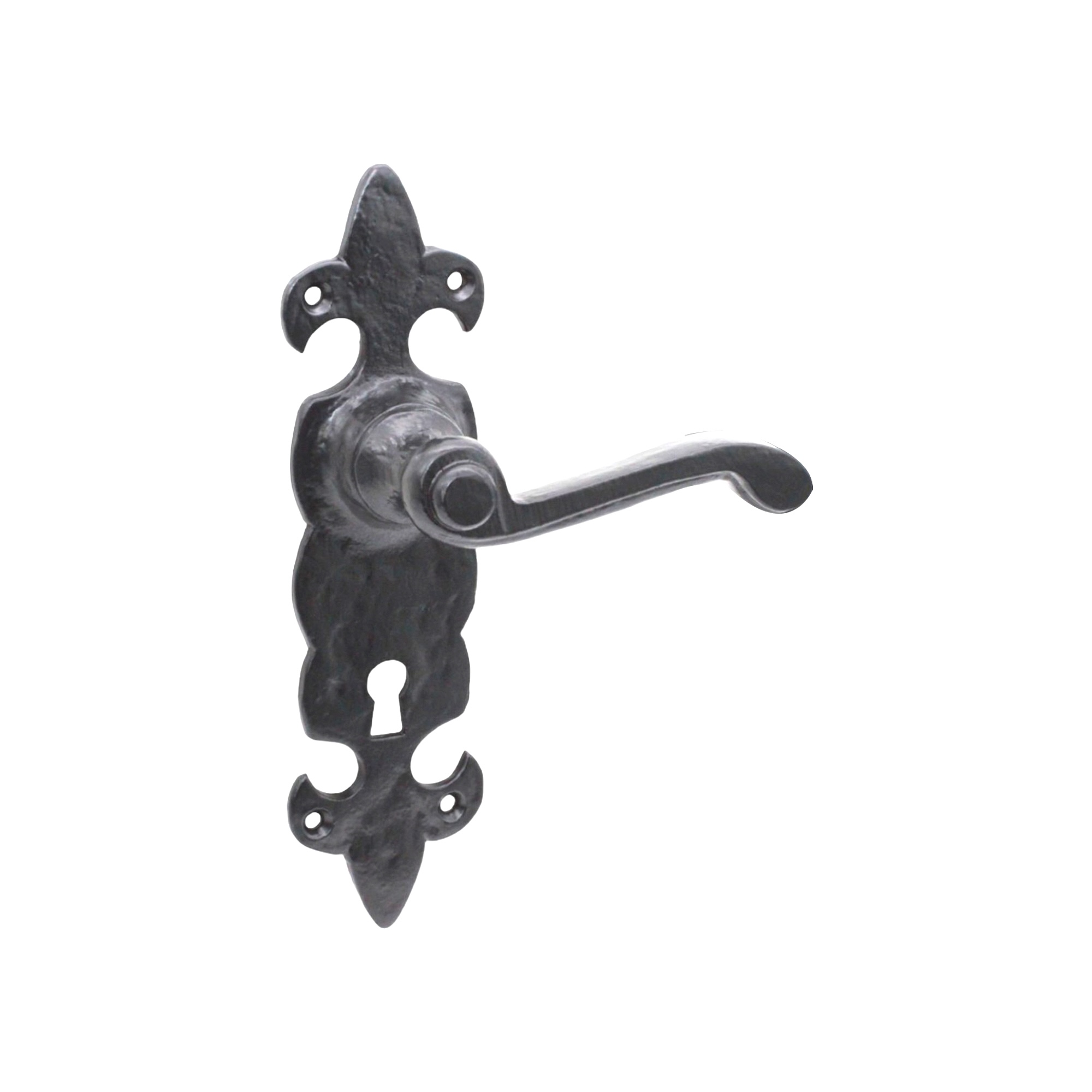 Our traditional and modern styles ‘Fleur De Lys’ internal backplate cast iron door handles with standard keyhole profile offer a timeless design with scroll style lever for interior doors where you have decided to use lock type handles on backplate. Fleur De Lys Lever Handle Specification: