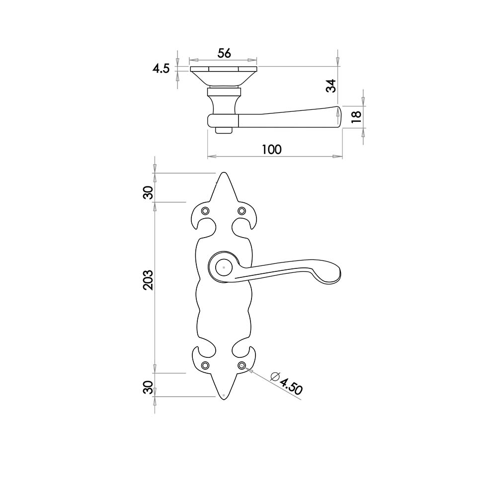 Fleur De Lys Suite Door Handle on Latchplate Black