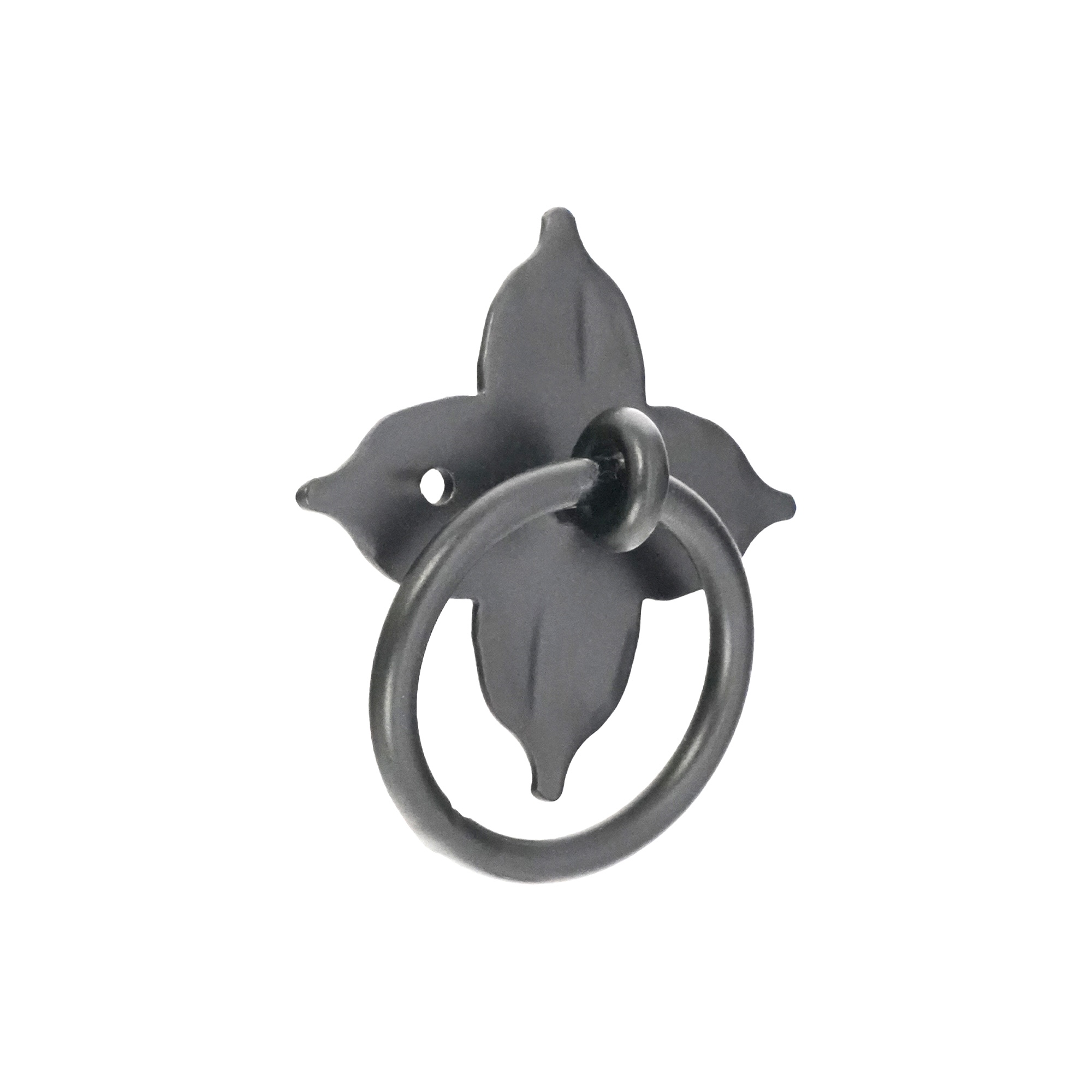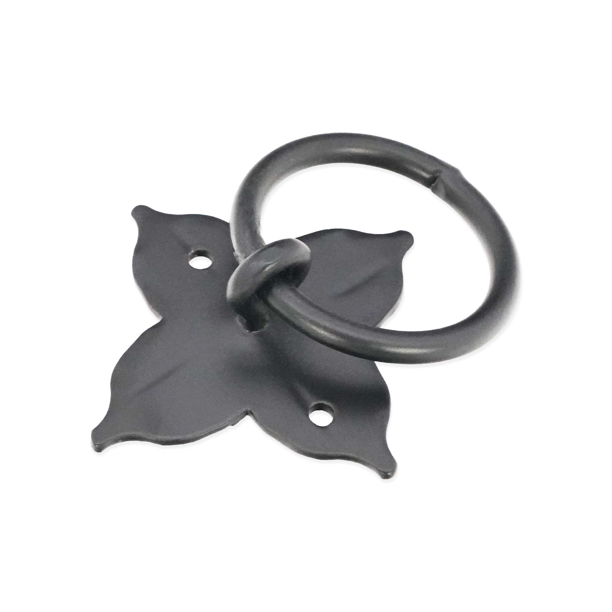 Our ‘Floret Ring Drop Pull’ traditionally made and hand forged with the ring attached assists in pulling the cupborads and drawers closed from the outside. The floral shape backplate with the hedged pattern will bring a touch of understated, modern styling which give a contemporary feel to any cabinet. Floret Ring Drop Pull Specifications: