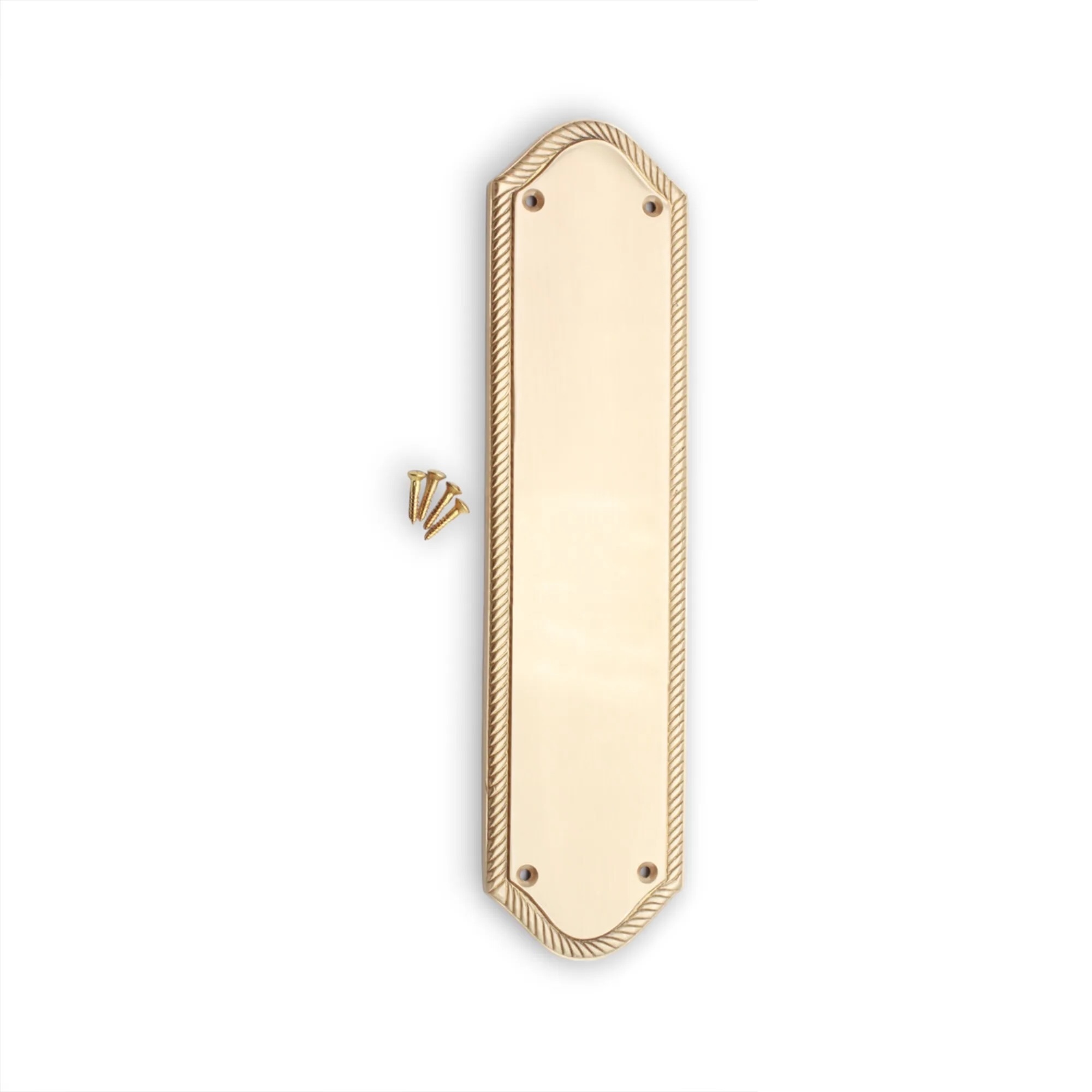 Our old style ‘Georgian Half-Round’ finger push plate made from solid forged brass material with a curved shaped head and an intricate detailing around the edge add a contemporary finish to any solid wood exterior doors with their stylish and strong look.