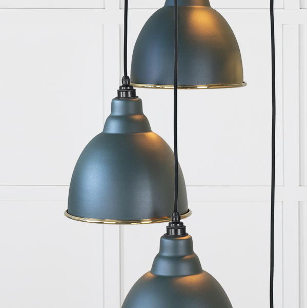Our Brindley cluster pendants are as eye-catching as they are versatile, and look fantastic when paired with matching wall lights. Our cluster pendants are a real statement piece. Featuring five matching pendants hung at differing heights, they are perfect for high-ceilinged entrance hallways or dining rooms. All our cluster pendants are made to order with a three to four week lead time. Overall height (from top of ceiling rose to bottom of lowest pendant) 1.3m as standard, pendant heights can be bespokely altered to your preference if needed. Our light fittings are dimmable when fitted with a compatible dimmable LED bulb. Bulb: LED Only – 6W Maximum (purchased separately) Supplied fully wired with large ceiling rose and all necessary fixings. Our cluster pendants are available in a wide range of colours and finishes. We also offer a bespoke colour service – please contact us for further information. Spun from solid brass and thoroughly polished, our Hammered Brass pendants offer a luxurious final look. When lit, the hammered interior glistens and emits a soft, dappled light.
