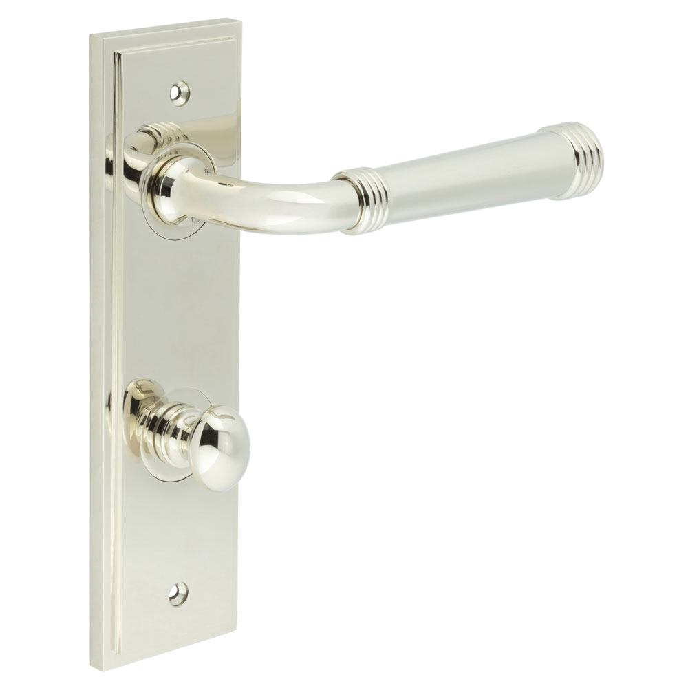 Highgate Door Handle Din Bathroom Backplate Polished Nickel & Turn & Release