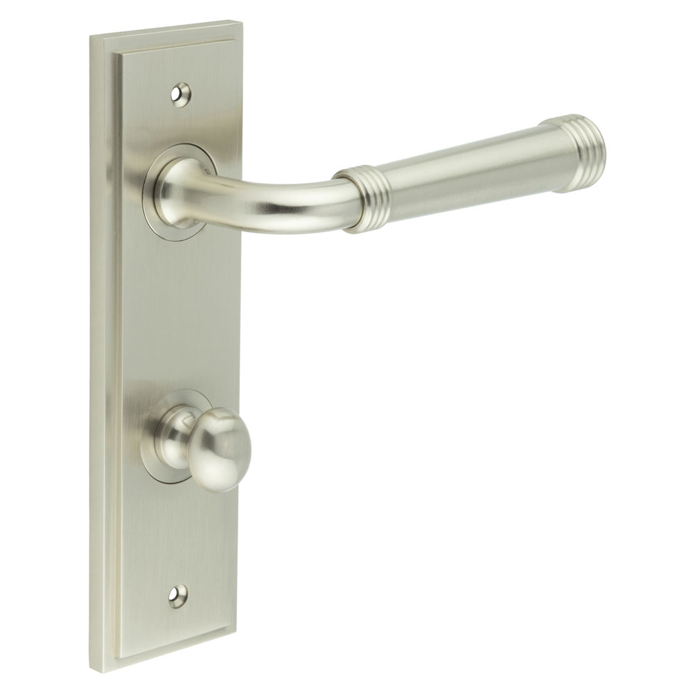 Highgate Door Handle Din Bathroom Backplate Satin Nickel & Turn & Release