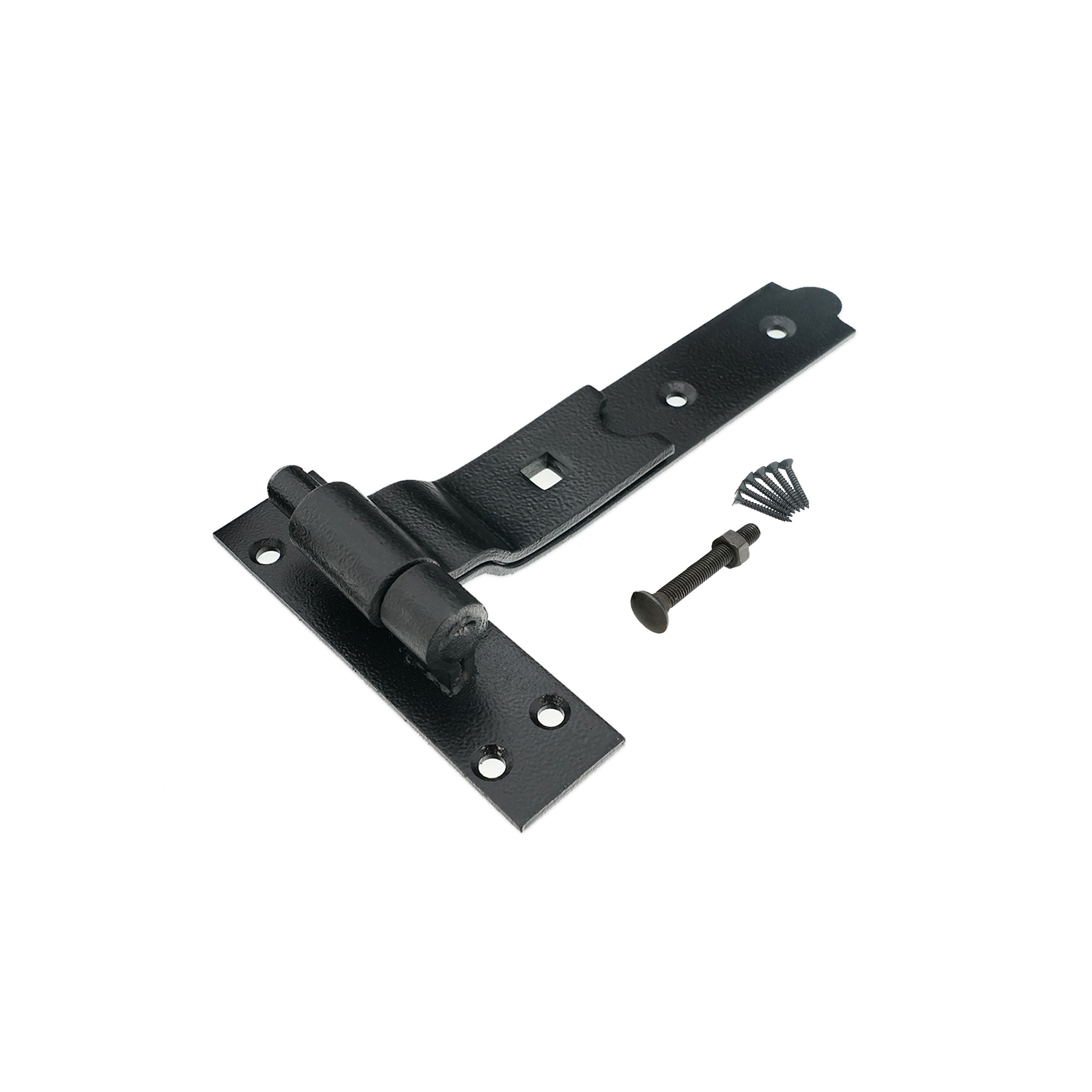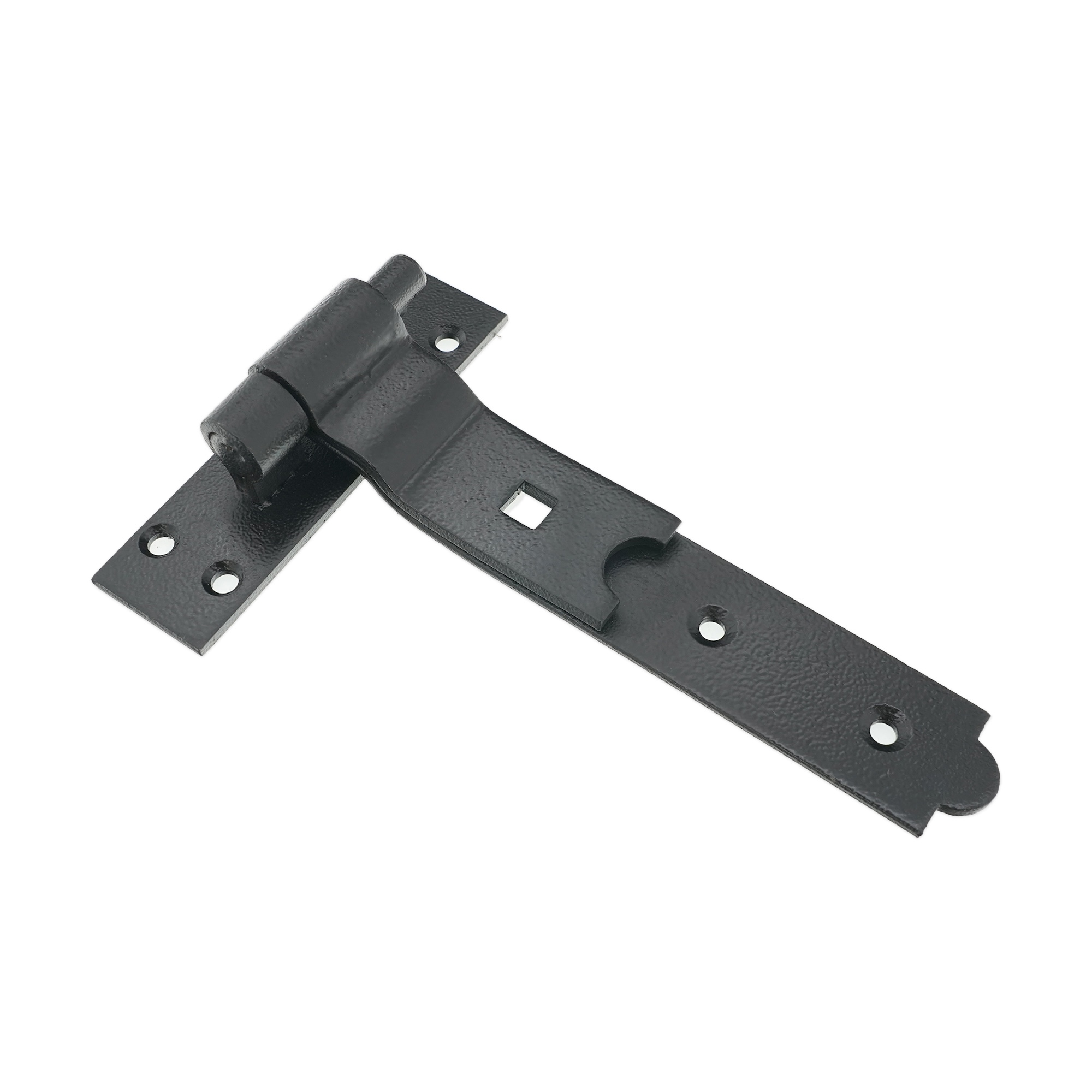 Our traditional ‘Cranked Hook And Band Hinge’ comprising of a hook for the frame and a band for the door or gate which allows the door to be lifted on or off in the open position for maintenance. Cranked band for the door or gate allowing for more flexibility in the positioning when fitting. The black powder-coated finish for resistance to corrosion.