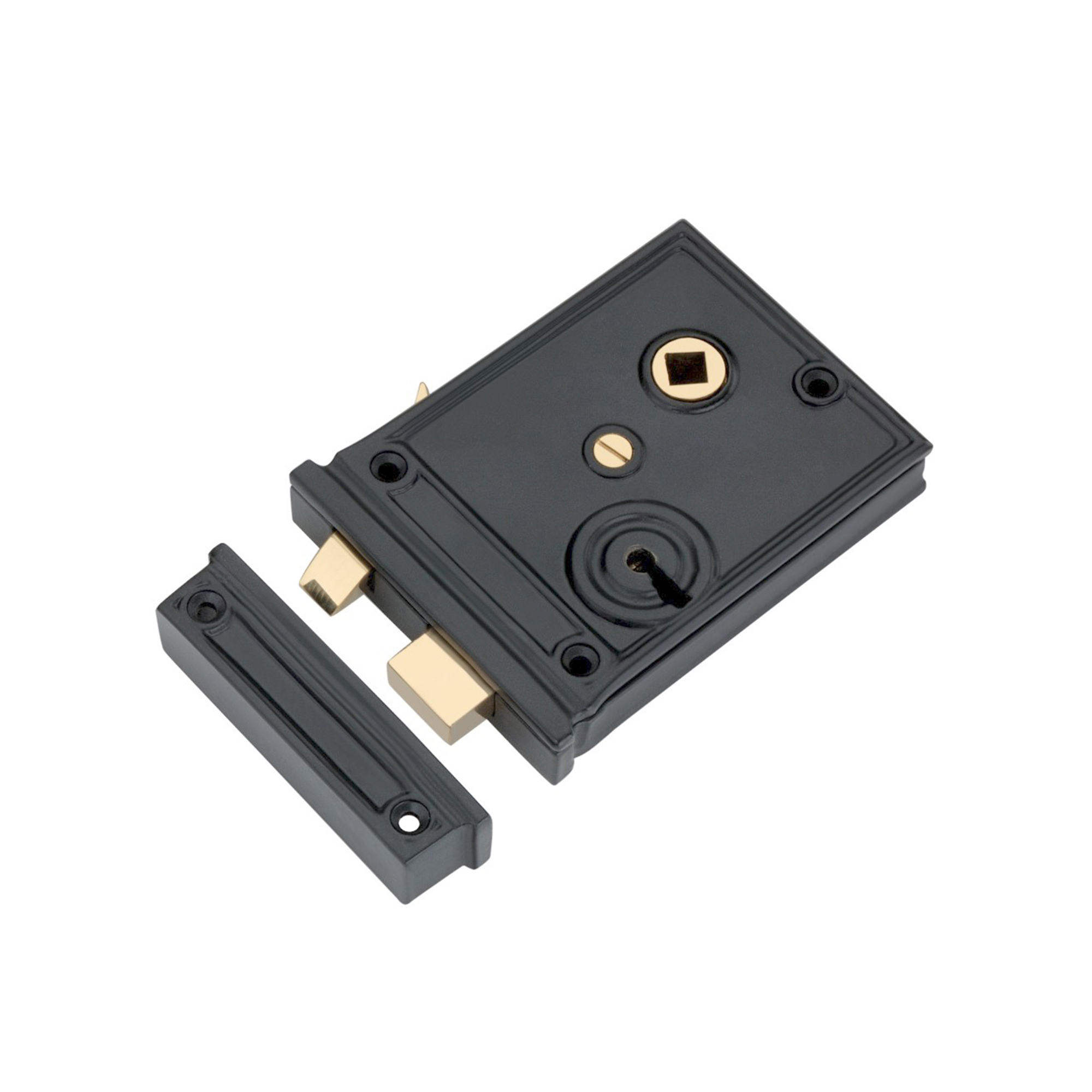 Our dual-handed iron ‘Horizontal Black Rim Lock’ are based on original victorian style locks with both the external design and internal locking mechanism.