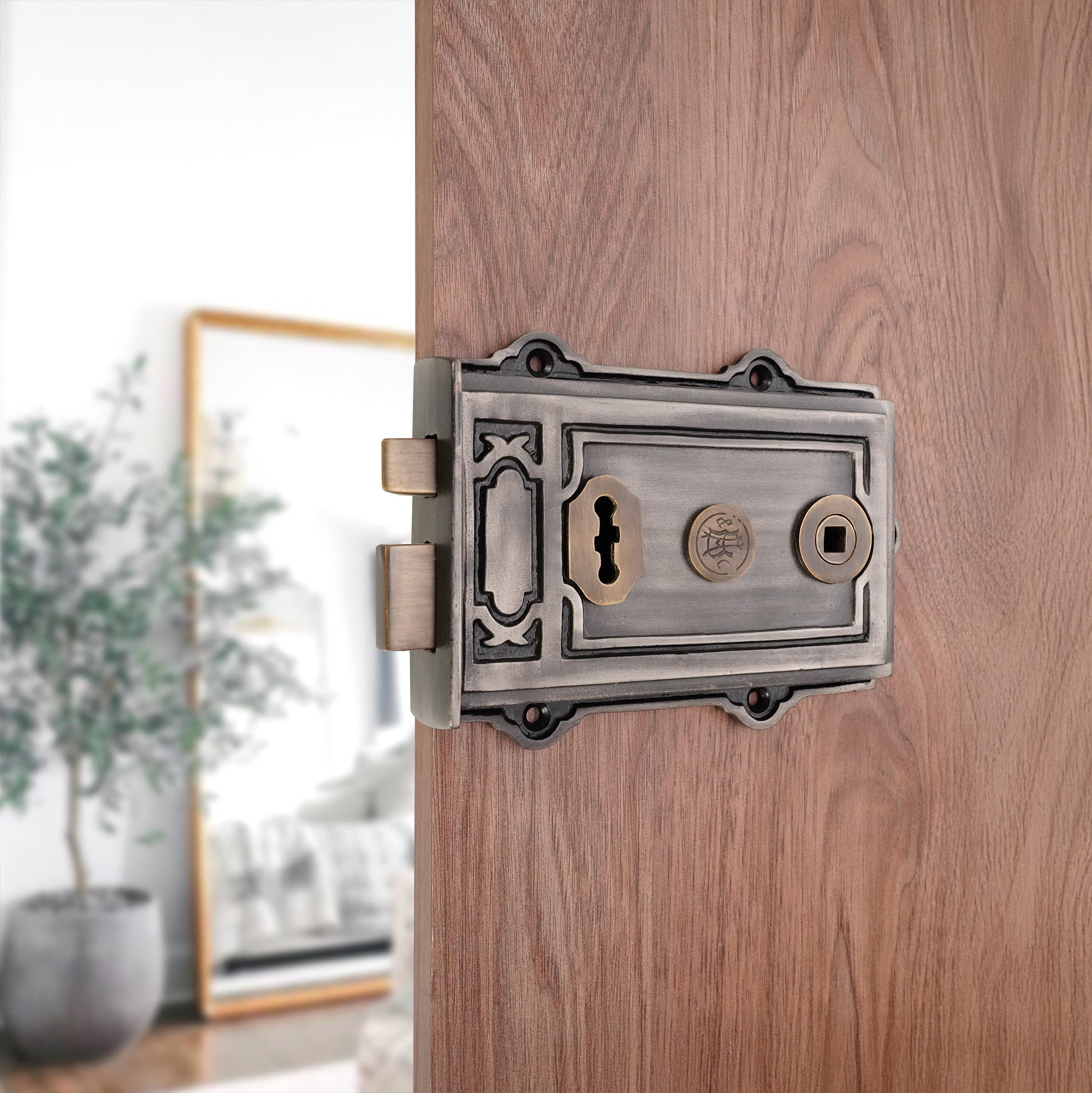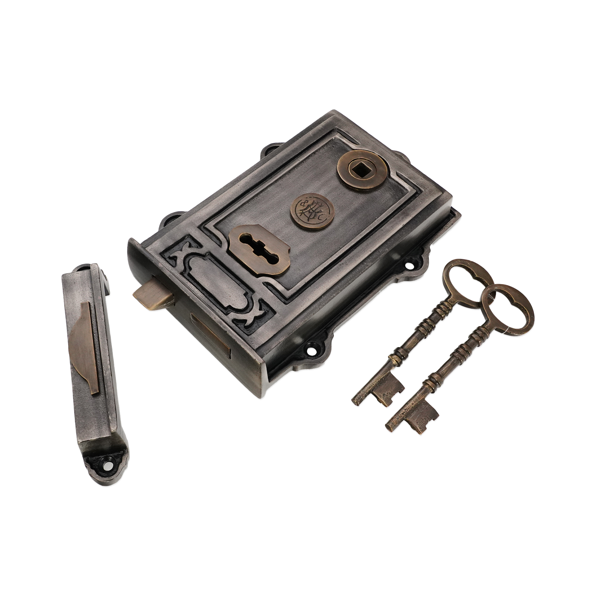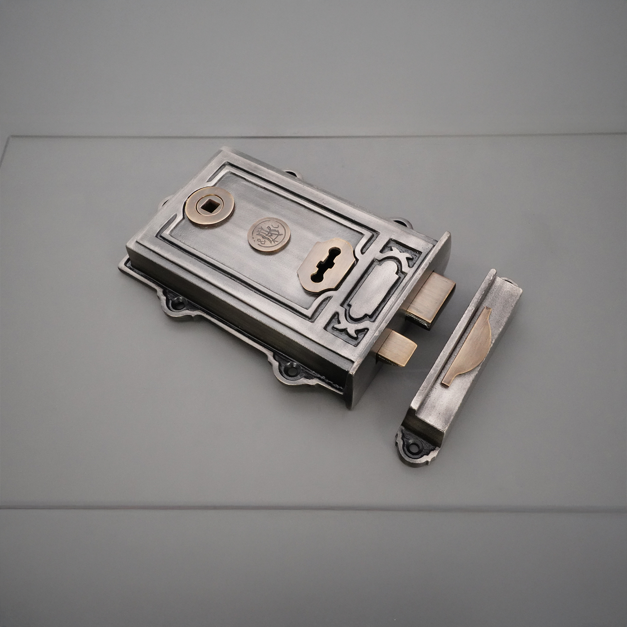 Our dual-handed solid cast iron ‘Davenport Rim Lock’ with both the external design and internal locking mechanism are based on original Edwardian locks. Each lock is hand finished and is supplied with two solid brass keys and lock keep.