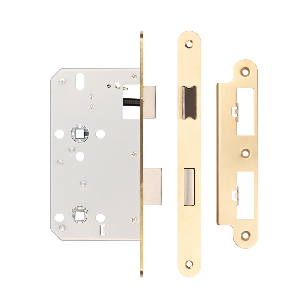 Jedo 78mm Din Bathroom Locks 60mm Backset Radiused Satin Brass