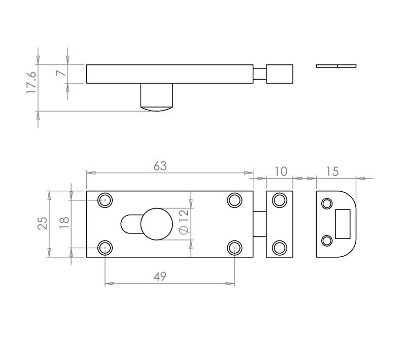 • The Jedo Bathroom Slide Bolt in satin chrome measures 63x25mm, providing a subtle and elegant locking solution for bathroom doors. The satin chrome finish offers a refined appearance that complements various interior styles.