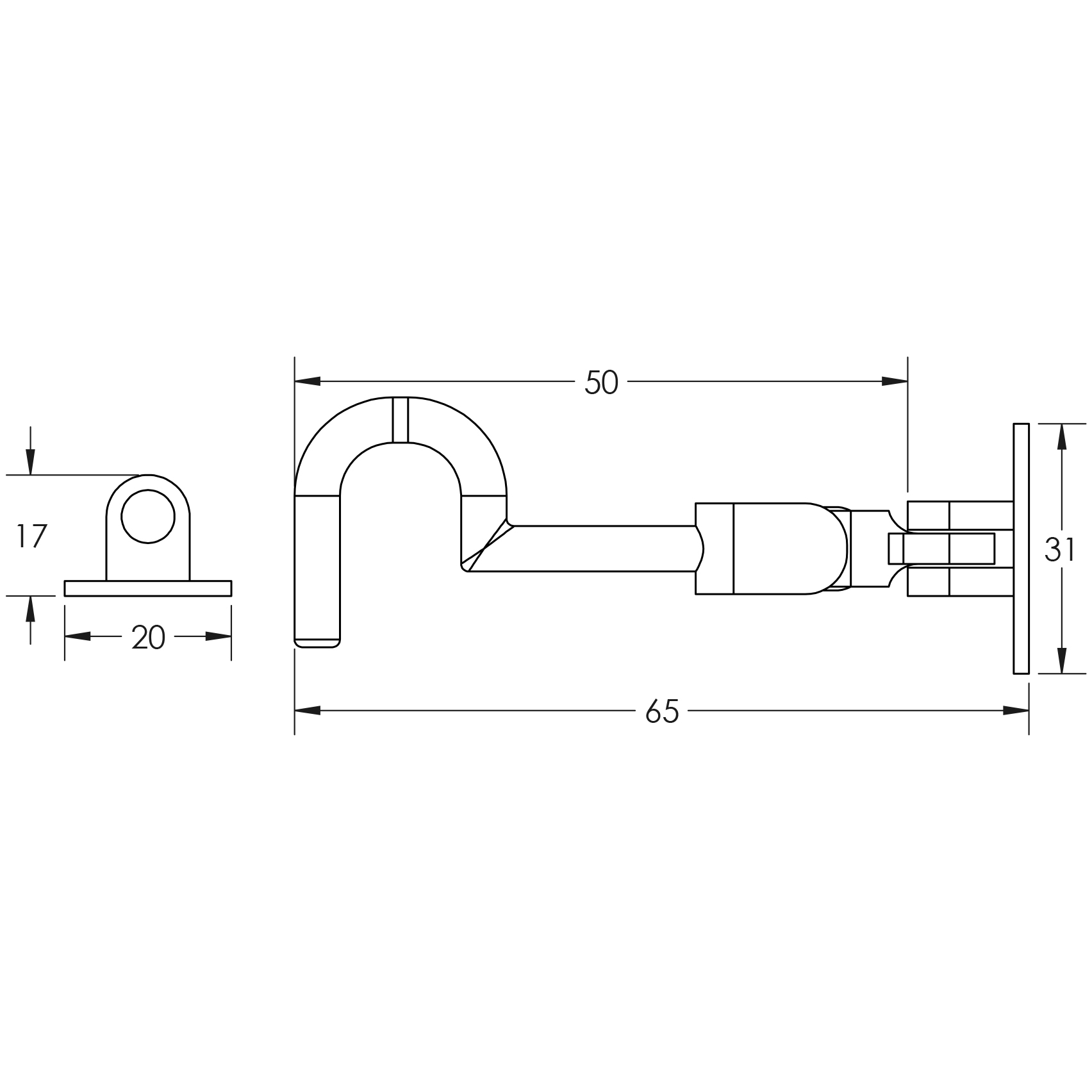 • Design: Traditional cabin hook with a sleek appearance