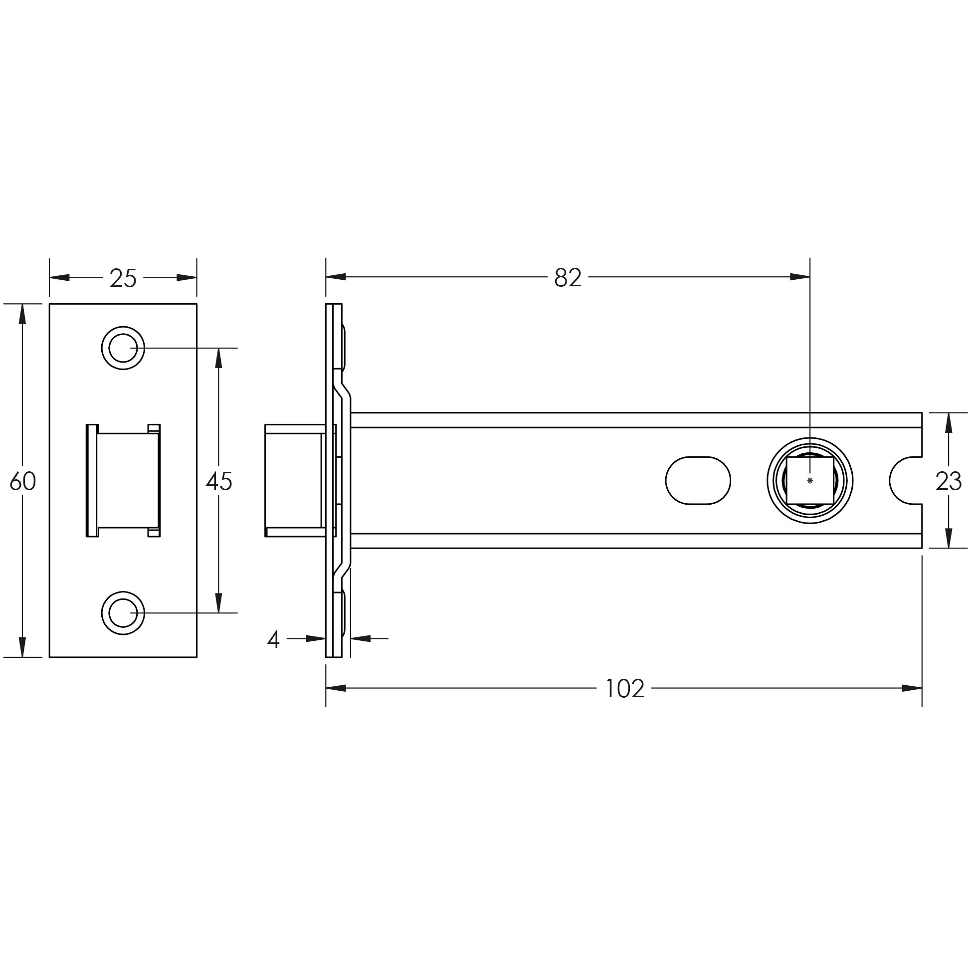 • Size: 102mm Sprung: Heavy Material Grade: Grade 304 Stainless Steel Corrosion Grade: Grade 3 Fire Rated: FD30/60 & Certifire Approved Certification: Certified under UKCA1121 and CE2812 standards Standards: BS EN 12209:2003 Fixings: 4 x wood screws To maintain compliance with the fire standard for this latch, it is recommended that you fit these with the relevant intumescent pack (GRA 16 & GRA 16.2) STANDARDS & CERTIFICATIONS.