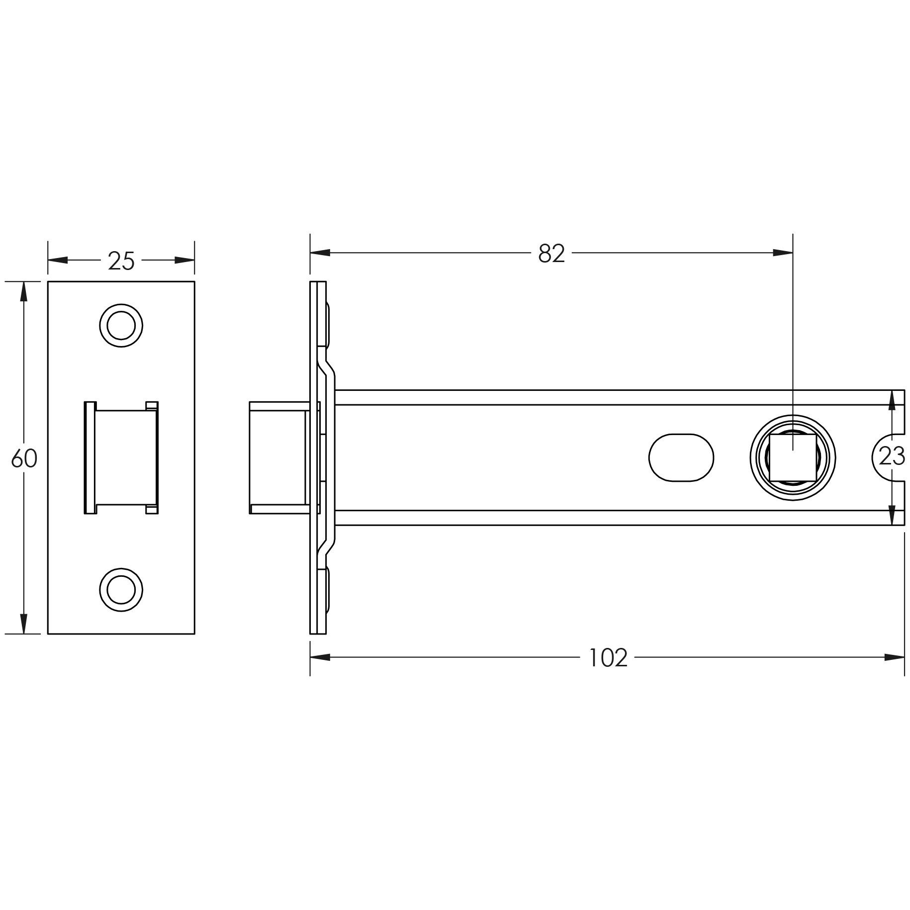 • Internal / External (Residential / Commercial) Suitable Door Thickness: 35–54mm Fixings: 4 x wood screws DIMENSIONS Case Length: 102mm Backset (to spindle): 45mm To maintain compliance with the fire standard for this latch, it is recommended that you fit these with the relevant intumescent pack (GRA 16 & GRA 16.2) Tailored quotes are available for larger commercial projects — contact our team to discuss specifications and pricing. STANDARDS & CERTIFICATIONS.